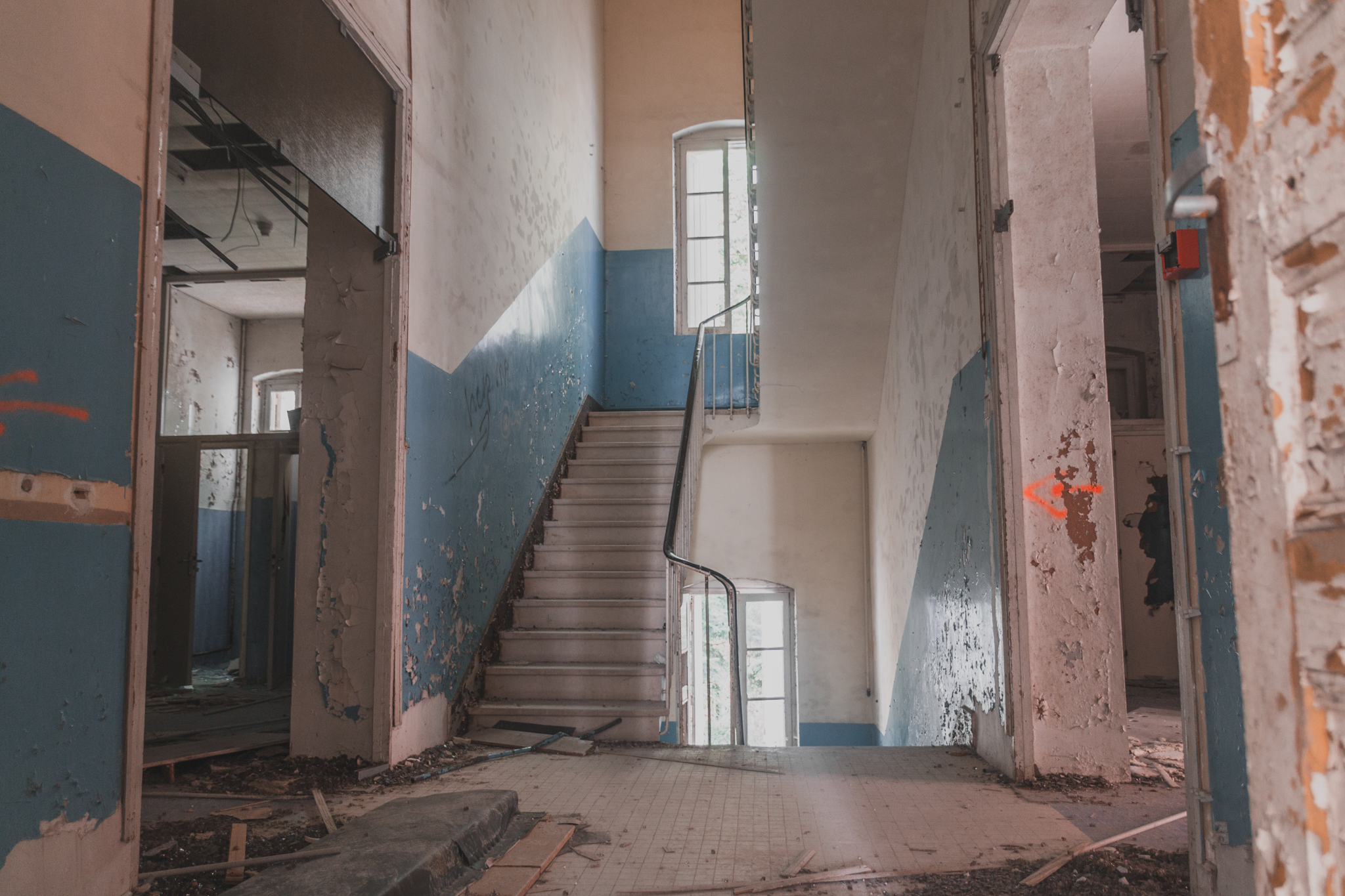 Nous parcourons chaque étage, les yeux rivés sur le moindre détail : une poignée de porte d'époque, une trace de peinture écaillée, ou l'inclinaison des fenêtres conçues pour laisser entrer un maximum de soleil (l'héliothérapie). Chaque couloir nous rappelle qu'avant d'être un terrain de jeu pour explorateurs, ce lieu a vu passer des générations d'enfants venus chercher un second souffle loin de la pollution des villes.