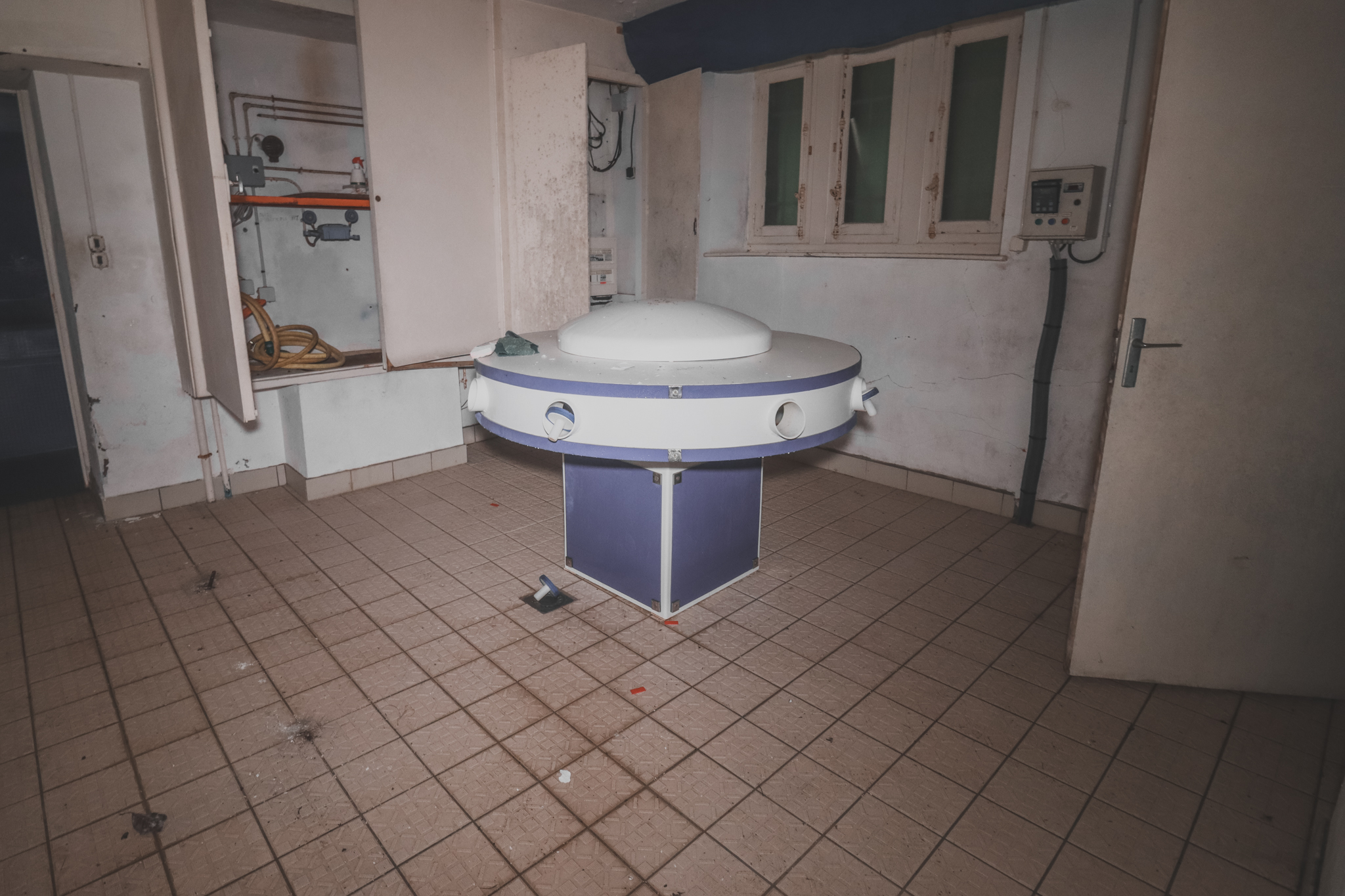 Je dois cependant vous faire une confidence sur les images qui illustrent ce récit. Emporté par l'atmosphère unique du bâtiment et l'envie d'en saisir chaque recoin, j'ai commis l'erreur de ne pas vérifier les réglages de mon appareil photo avant de commencer mes prises de vues. Mes clichés manquent donc cruellement de netteté. Pourtant, j'ai choisi de vous les présenter ainsi : ce flou involontaire finit par servir l'ambiance fantomatique du lieu, offrant une vision vaporeuse qui colle étrangement bien à l'histoire de ces thermes disparus.