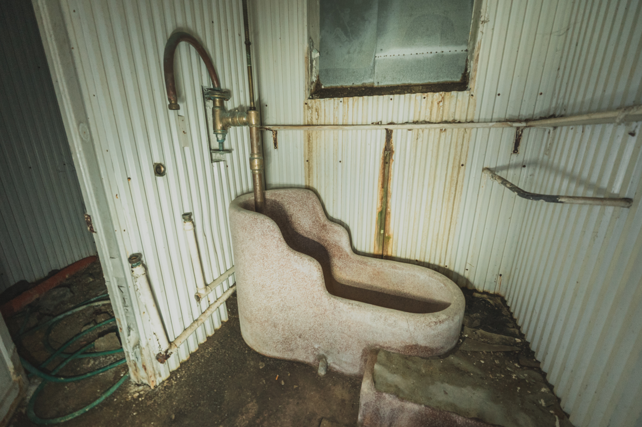 À l'intérieur, le constat est immédiat : l'eau de la source, découverte au début du XIXe siècle et domptée jadis par les premiers baigneurs, a repris ses droits. L'humidité est omniprésente et une odeur de moisissure sature l'air. Partout, le calcaire a formé des concrétions blanchâtres sur les sols et les parois, transformant les anciennes salles de soins en une sorte de grotte artificielle.