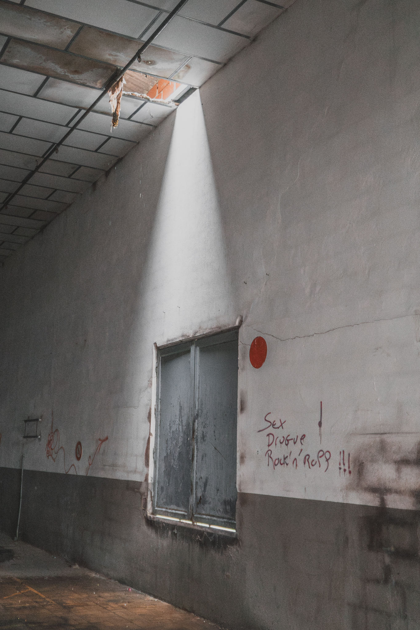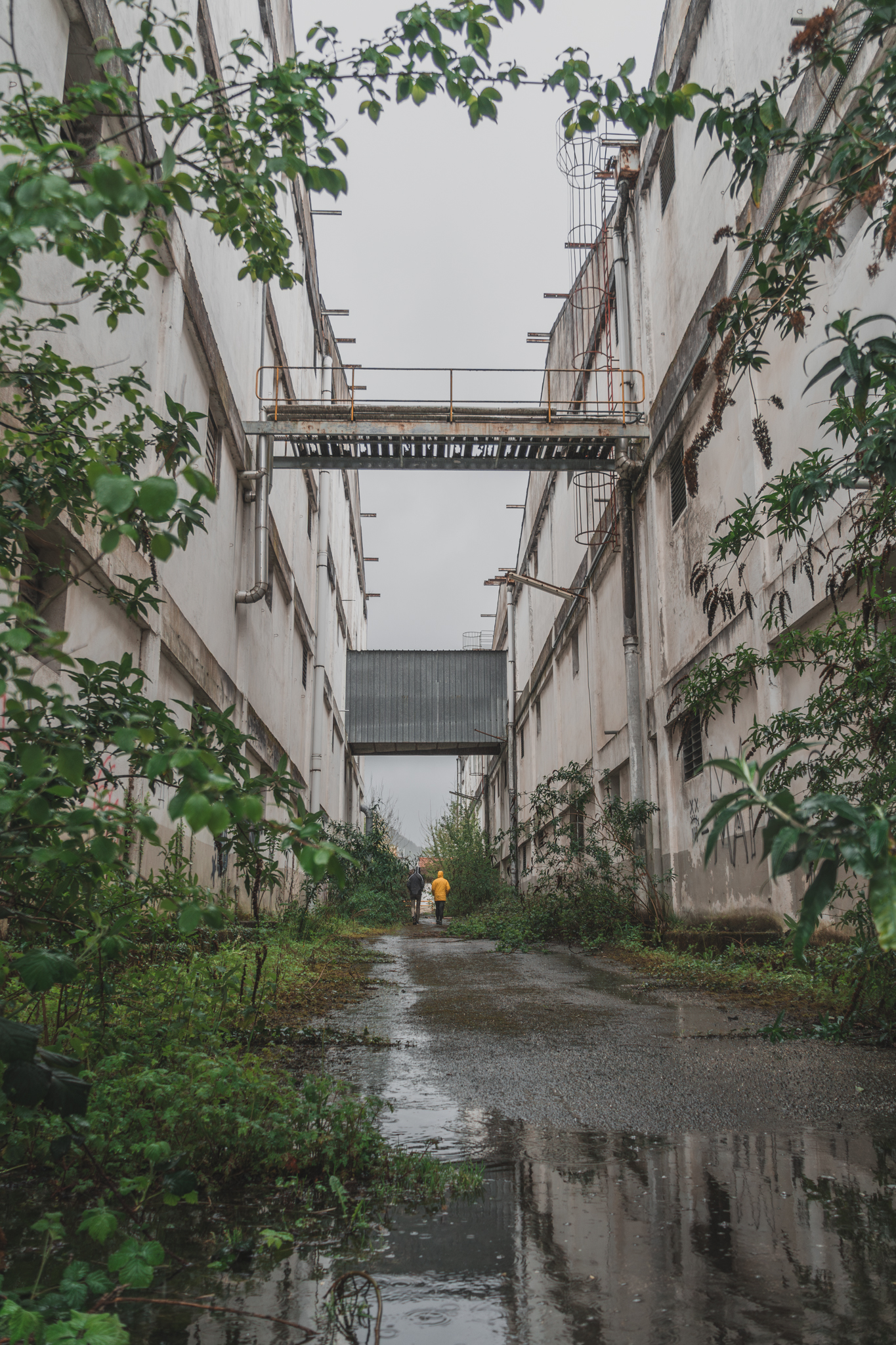 Le ciel de l’Ariège est lourd aujourd'hui. Sous une pluie fine qui tambourine sur les toitures en dents de scie, nous nous avançons vers cette silhouette colossale qui domine la vallée. Ce géant de briques et de verre, autrefois fleuron du Pays d’Olmes, semble nous observer en silence. Le passage est étroit. En nous glissant à travers une tôle disjointe, le monde extérieur s'efface. Nous voici dans le ventre de la bête.